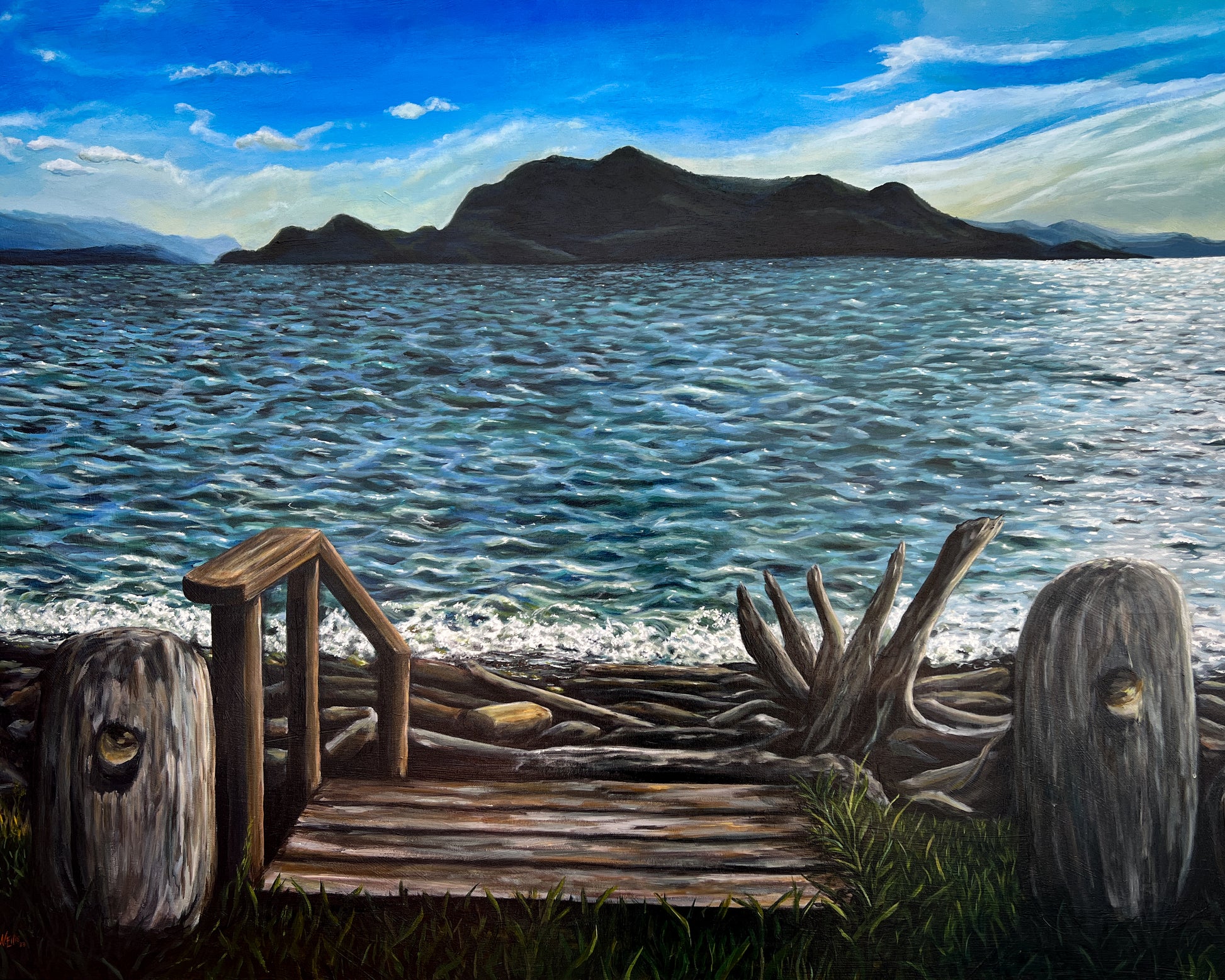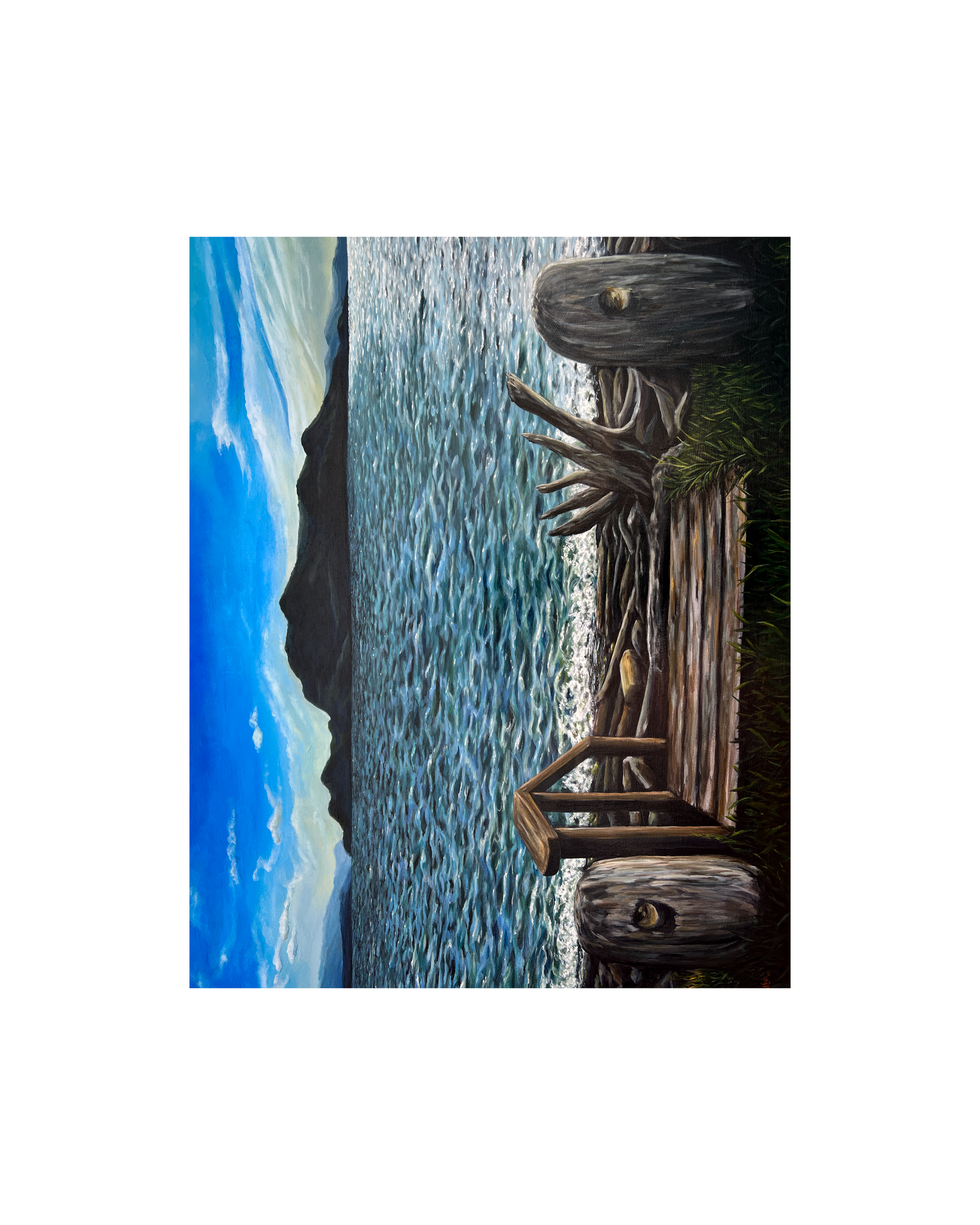 The viewer stands on the shore of Orcas Island, in the tiny town of Olga, Washington and takes in the beauty of the San Juan Islands surrounded by the Salish Sea.